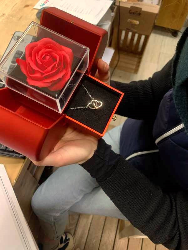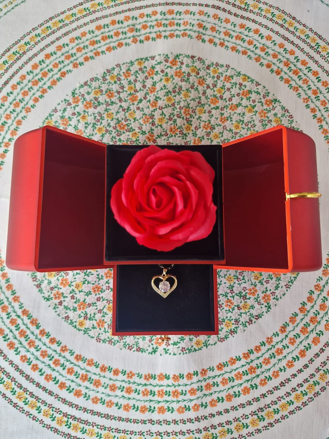 Ya sea para San Valentín, aniversarios o bodas, este conjunto de collar y cofre con rosa preservada es el regalo ideal para sorprender y transmitir un amor eterno.