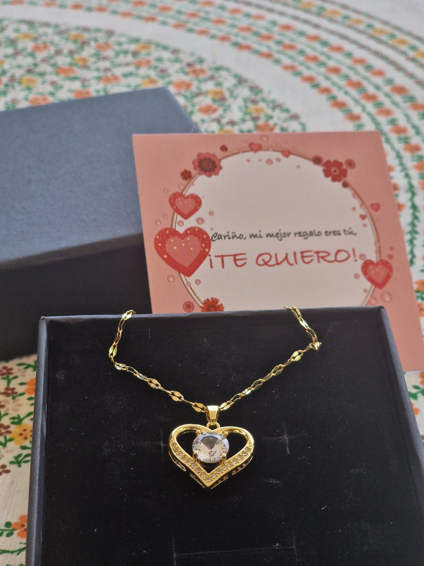 Un elegante collar con colgante de corazón, fabricado en acero inoxidable de alta calidad. Este collar no se decolora ni se oxida, siendo antialérgico y diseñado para durar en el tiempo.