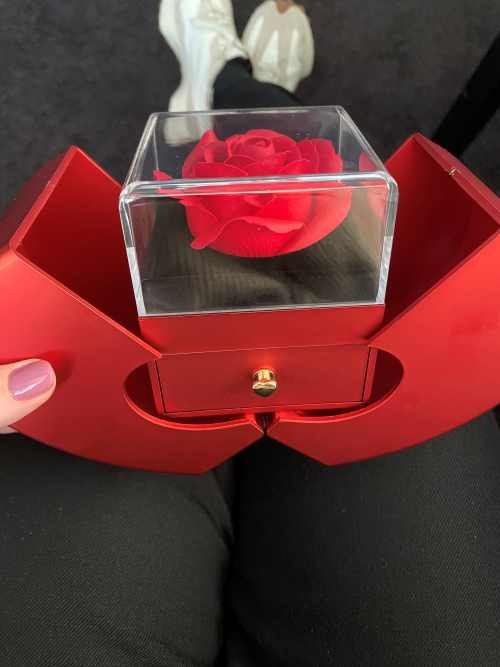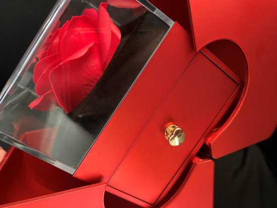 Las rosas del cofre están hechas a mano, preservadas para mantener su belleza durante años. Cada rosa parece recién cortada de un rosal, simbolizando un amor inmortal que nunca se marchitará.